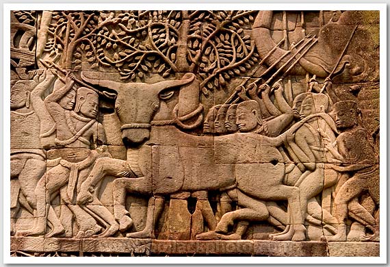 Bas-relief on The Bayon, Angkor, Cambodia