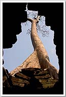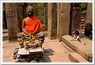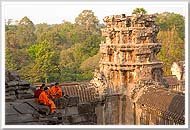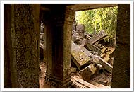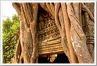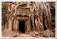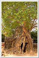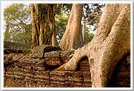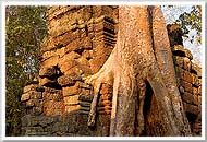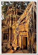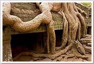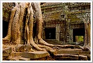 Angkor Wat is an enormous complex of temples in Cambodia, built by the Khmer empire between the 9th and 14th centuries. When that empire faded, the temples were abandoned to the jungle. In more recent times, archeologists have been working to understand and restore the structures here, but my favorite places are the ones where you can still see the jungle trying to reclaim the stonework. |