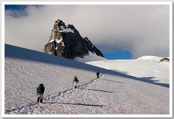 Climbers approaching Pigeon Spire, Bugaboo Glacier Provincial Park, Canada