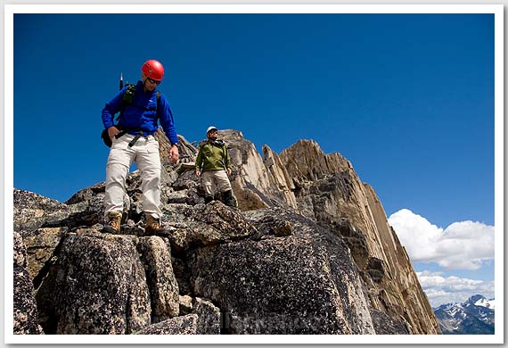Steve Matera and Doug Hagen on Eastpost Spire, Bugaboo Glacier Provincial Park, Canada