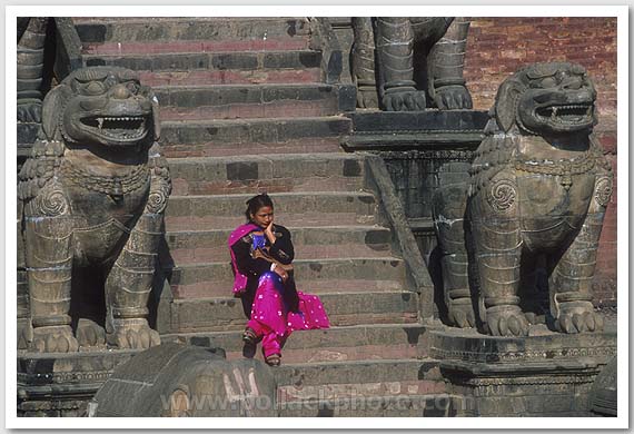 Woman on the stairs of Nyatapola Temple, Bhaktapur, Nepal