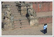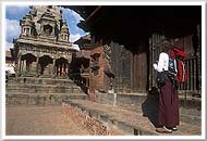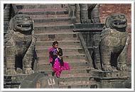 Bhaktapur lies not far outside of Kathmandu. This town is full of ornate temples in pleasant open squares, connected by twisting streets which make good wandering.