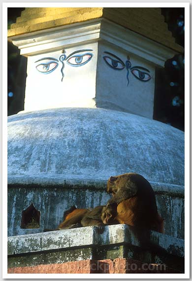 Monkeys at Swayambhunath, known as the 'monkey temple', Kathmandu, Nepal