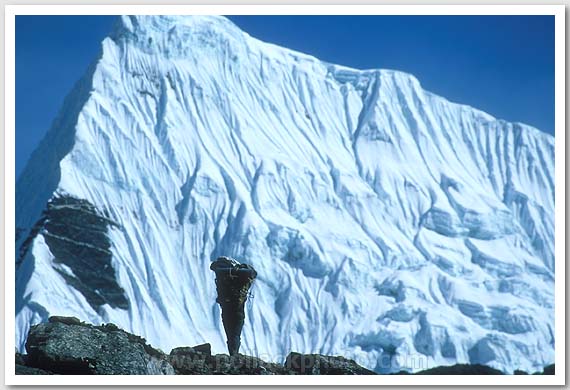 Porter and fluted peak of the Chhukung Glacier cirque, Khumbu region, Nepal