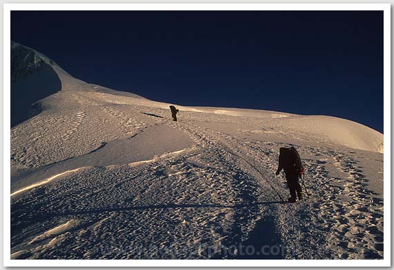 Doug Hagen and Kevin Hines at sunrise on Huayna Potosi, Cordillera Real, Bolivia