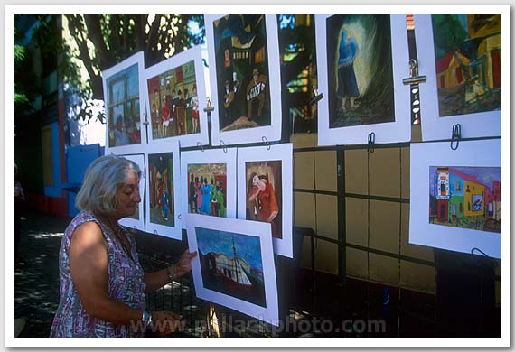Woman selling her paintings, La Boca's Caminito, Buenos Aires, Argentina