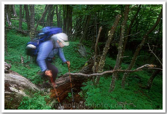 Anna Alonzo hiking in the Valle Ascencio, Torres Del Paine National Park, Chile