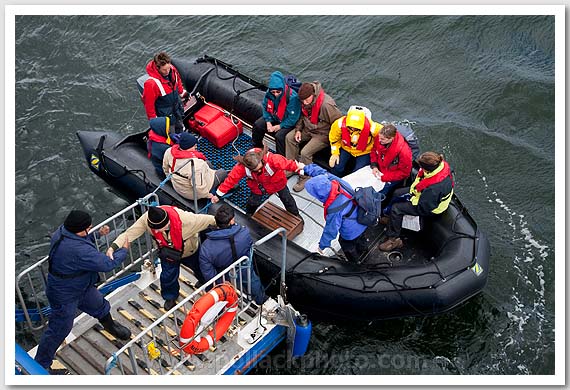 Unloading a zodiac, Ocean Nova, South Atlantic Ocean