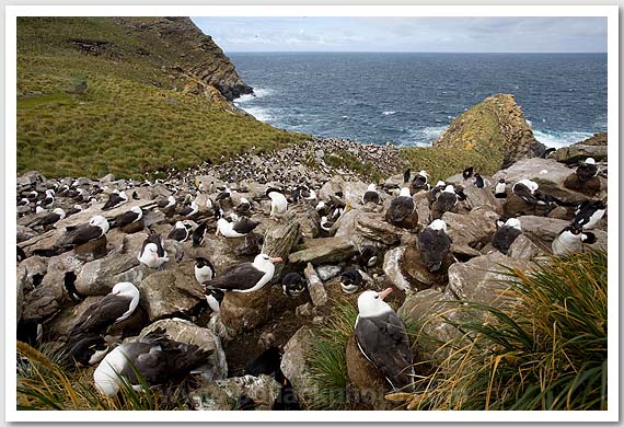 Black-browed Albatross and Rockhopper Penguin colony, West Point Island, Falkland Islands