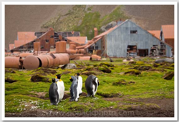 King penguins and the remains of Stromness whaling station, South Georgia