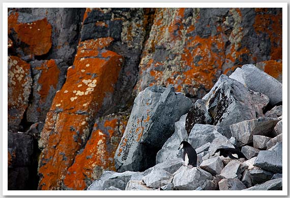 Chinstrap penguins and rocks, Half Moon Island, South Shetlands