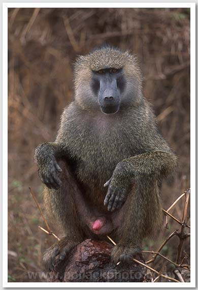 Baboon letting it all hang out, Lake Manyara region, Tanzania