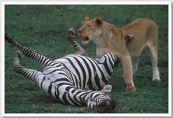 Lion with zebra kill, Serengeti National Park, Tanzania