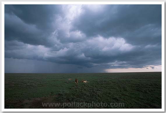 Storm clouds and lions, Serengeti National Park, Tanzania