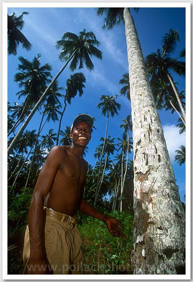 Malai about to climb a coconut tree, Zanzibar, Tanzania