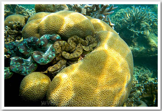 Rugose giant clams in Honey comb coral, Ko Surin, Thailand