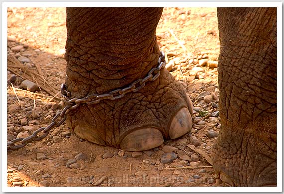 Chained elephant at an elephant camp, Mae Sa Valley, Thailand