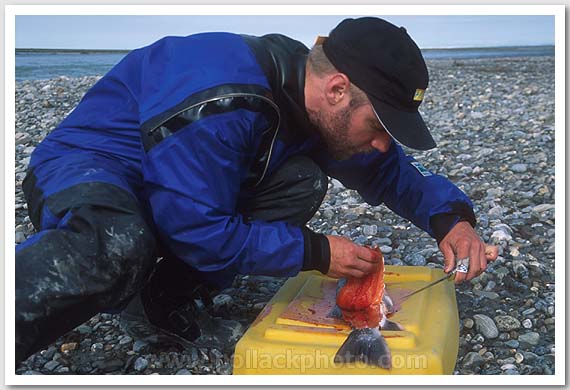 Allen Jones fillets an Arctic Char, Arctic National Wildlife Refuge, AK