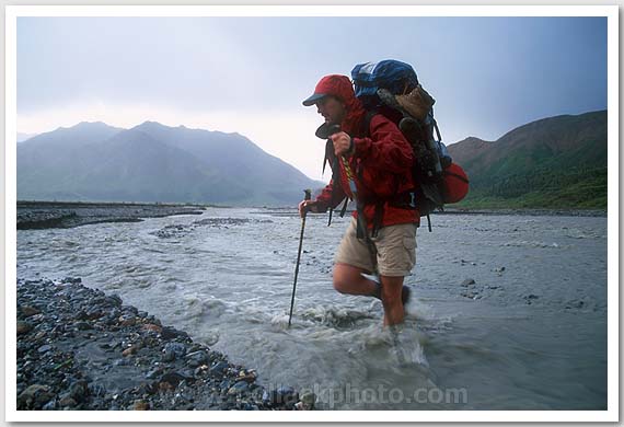 Steve Matera crossing the Toklat River, Denali National Park, AK
