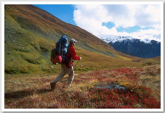 Steve Matera backpacking near Anderson Pass, Denali National Park, AK