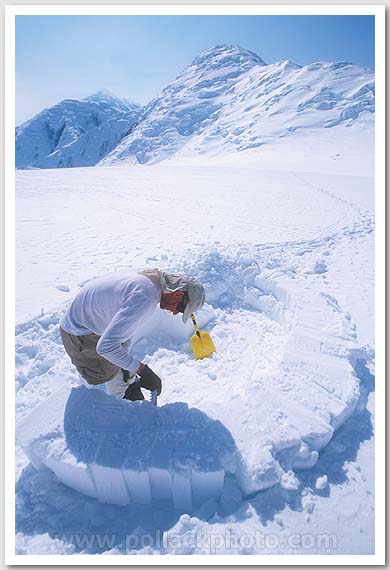 Doxey Kemp building a snow veranda, Kahiltna Glacier, Denali National Park, AK