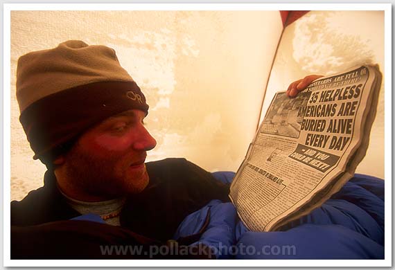 Rob Duff wondering if the snow storm will make the tabloid's predictions come true, Denali National Park, AK