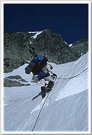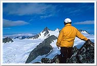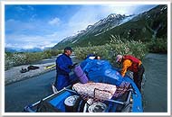 We did a combination mountaineering and river rafting trip when we visited Lake Clark National Park. While the Tlikakila does get floated somewhat regularly, up in the glacial cirques you feel (perhaps correctly!) that no one may have stood in that spot before you. One of our great pleasures on this trip was coming up with our own names for all the unnamed features around us. |