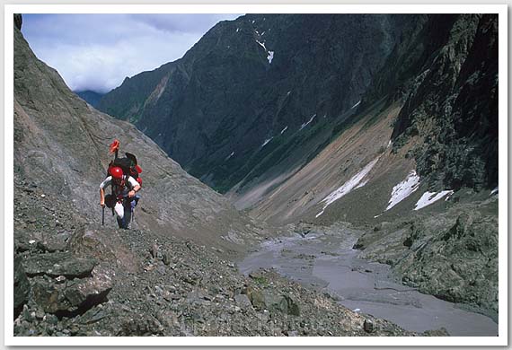Steve Matera hiking up the Eklutna River valley, Chugach Mountains, AK