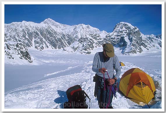 Stephanie Arbogast tying in to go climbing, Denali National Park, AK