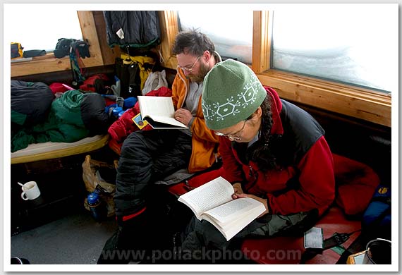 Jackie Garces and Doug Hagen reading, Sheldon Mountain House, Ruth Amphitheatre, Denali National Park, AK