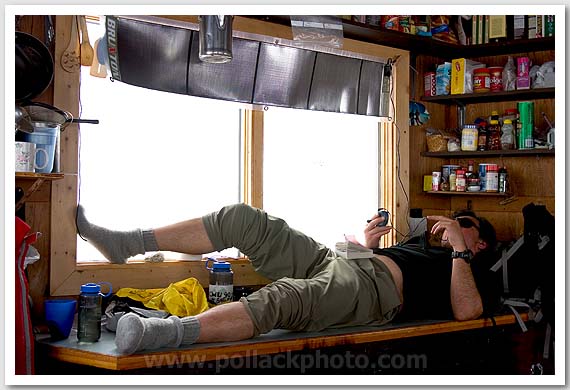 Randy Barnett relaxing, Sheldon Mountain House, Ruth Amphitheatre, Denali National Park, AK