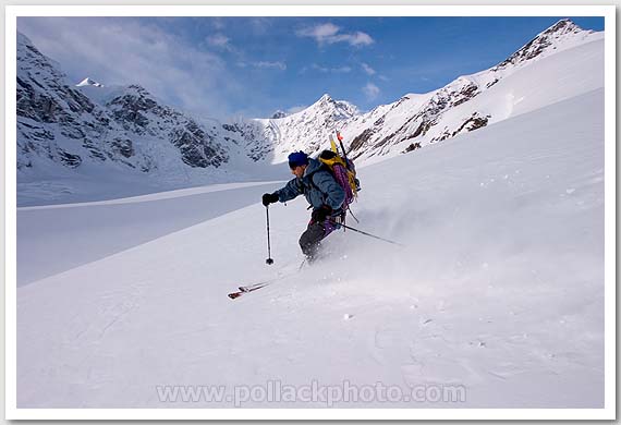 Steve Matera skiing in the Ruth Amphitheatre, Denali National Park, AK