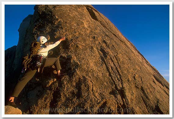 Anna Alonzo scrambling on Cap Rock, Joshua Tree National Park, CA