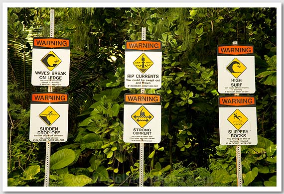 Warning signs, Ke'e Beach, Kauai, Hawaii