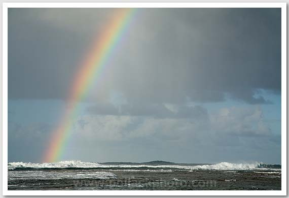 Rainbow and surf, Kauai, Hawaii