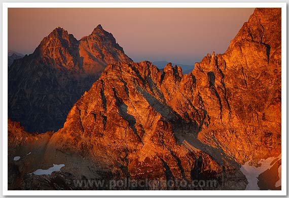 Sunset on Black Peak over the shoulder of Mt. Goode, North Cascades National Park, WA