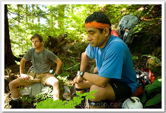Keith Luther and Mario Moreno on the way up The Barrier, Southern Pickets, North Cascades National Park, WA