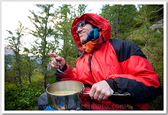 Ethan Pollack dining at Holden Pass, Glacier Peak Wilderness, WA