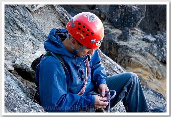 Craig McGoran tying in, Burgandy Spire, North Cascades, WA