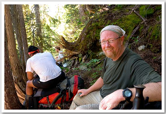Jim Merrill at a rest on the way up Eiley-Wiley Ridge, North Cascades National Park, WA