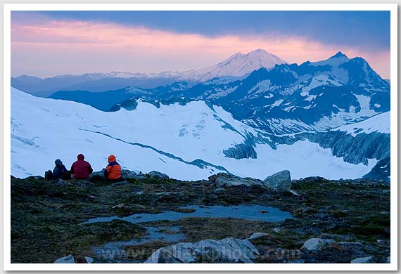 Climbers watching an evening storm brewing, North Cascades National Park, WA