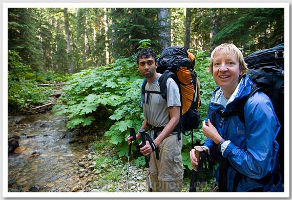 Shail Srinivas and Shauna McDaniel along Access Creek, North Cascades National Park, WA
