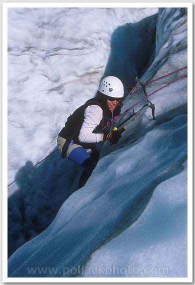 Anna Alonzo ice climbing on the Coleman Glacier, Mt. Baker, WA