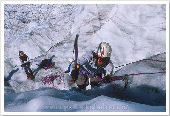 Doug Hagen ice climbing on the Coleman Glacier, Mt. Baker, WA