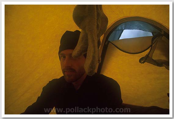 Kevin Hines tentbound in a storm, North Cascades National Park, WA