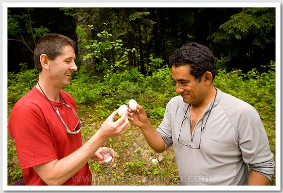 Sandy Weil and Mario Moreno fuel up for the trip, North Cascades National Park, WA