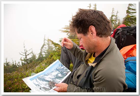 Keith Luther picturing the view sans whiteout, Pickell Pass, North Cascades National Park, WA