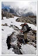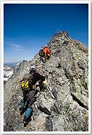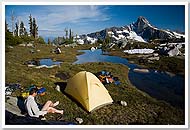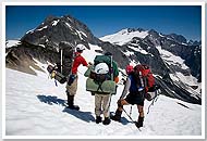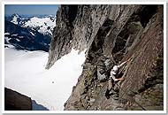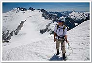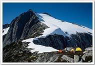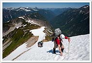 In 2008, Mario, Sandy, Keith, and I attempted a complete Picket Range traverse via Picket Pass. (We were joined on the hike in by Doug, Shail, Carla, and Yana, who were heading to Challenger.) Near the midpoint of our traverse, at Pickell Pass, whiteout burned up our available time, forcing us to backtrack and turn the trip into a West to East traverse of the Northern Pickets. |