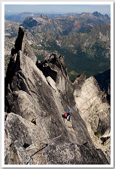 Anna Alonzo climbing on the North Ridge of Mt. Stuart, Alpine Lakes Wilderness, Cascades, WA