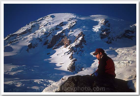 Morghan Laswell and upper mountain, Mt. Rainier National Park, WA